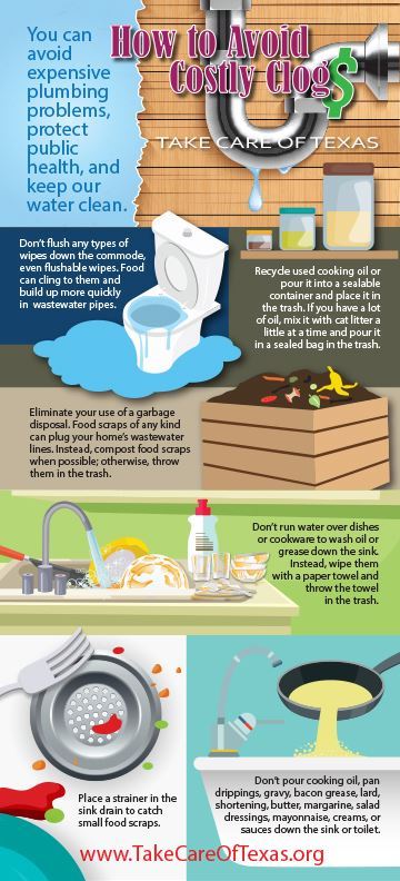 Disposal of fats, oils, and greases (F.O.G.) down your household fixtures can cause health hazards, create an unwelcome clogged sink or toilet, and cost you and your city a lot of extra money. (Learn more about preventing clogged pipes with this graphic)
